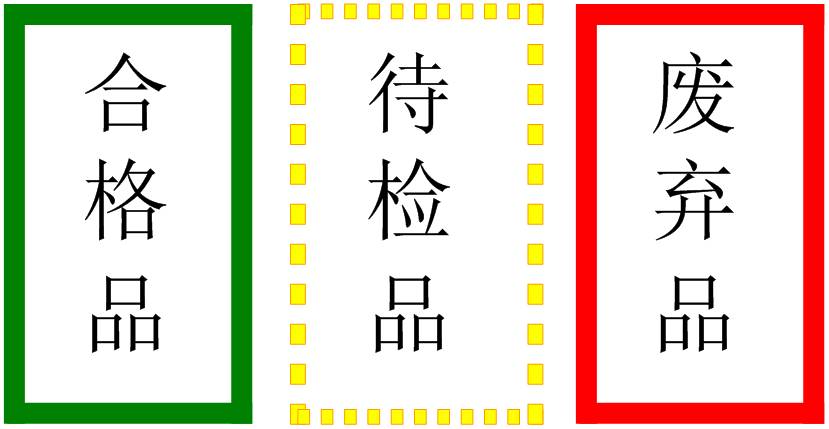 3.如物品較小且用貨框裝載時,綠色框:合格品;紅色框:不合格品;黃色框:待檢查品