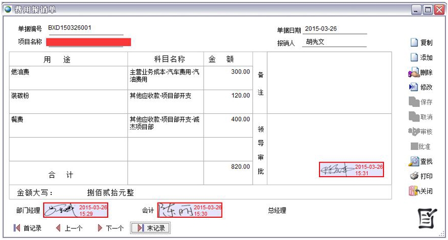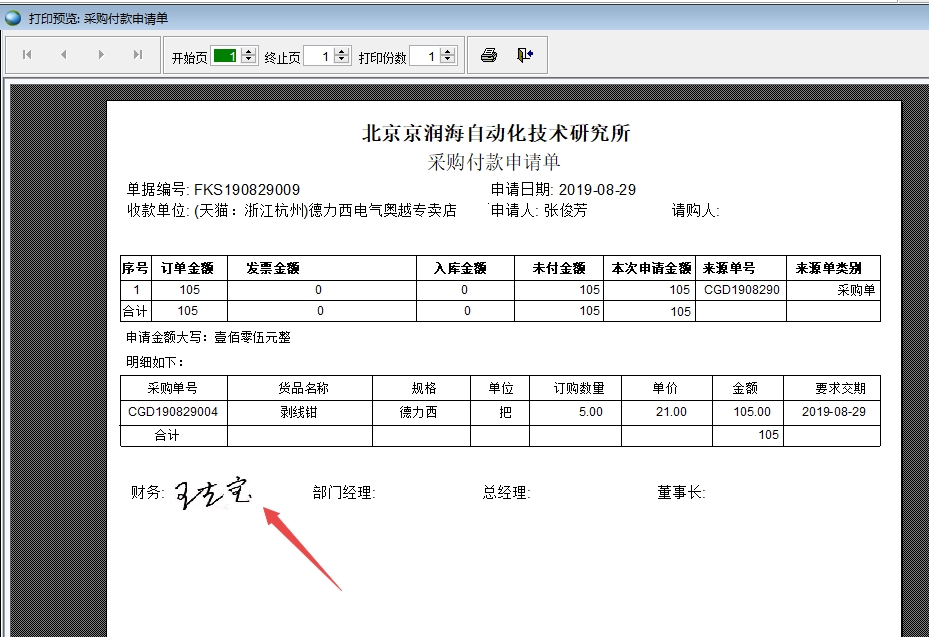 使用數字簽名后可以在單據和打印報表中體現