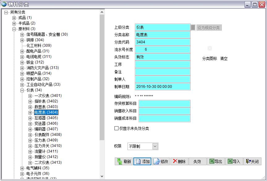 如果是一級(jí)分類(lèi)不用填寫(xiě)上級(jí)代碼,二級(jí)到五級(jí)分類(lèi)必須指定上級(jí)分類(lèi)代碼如下圖,電度表的上級(jí)分類(lèi)代碼是34,且已經(jīng)在系統(tǒng)里存在