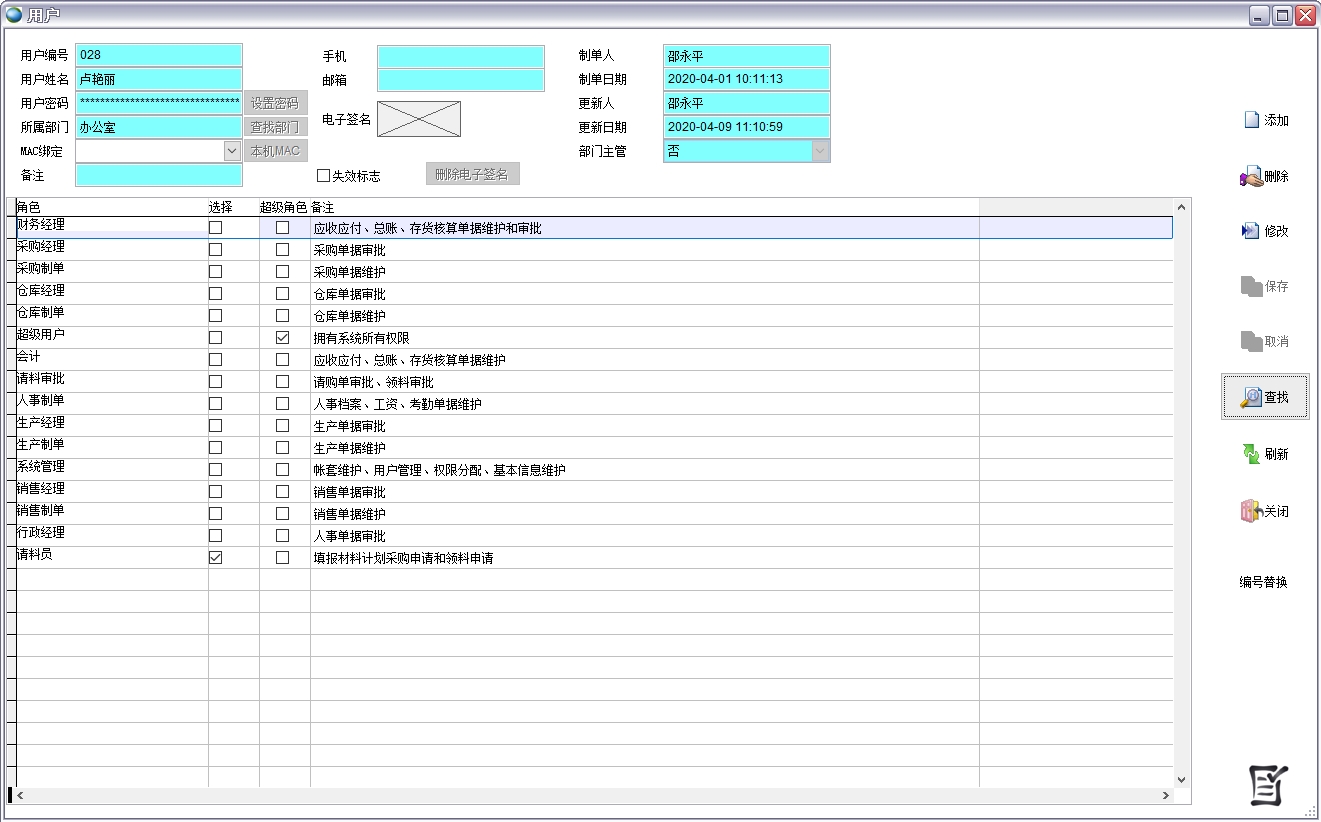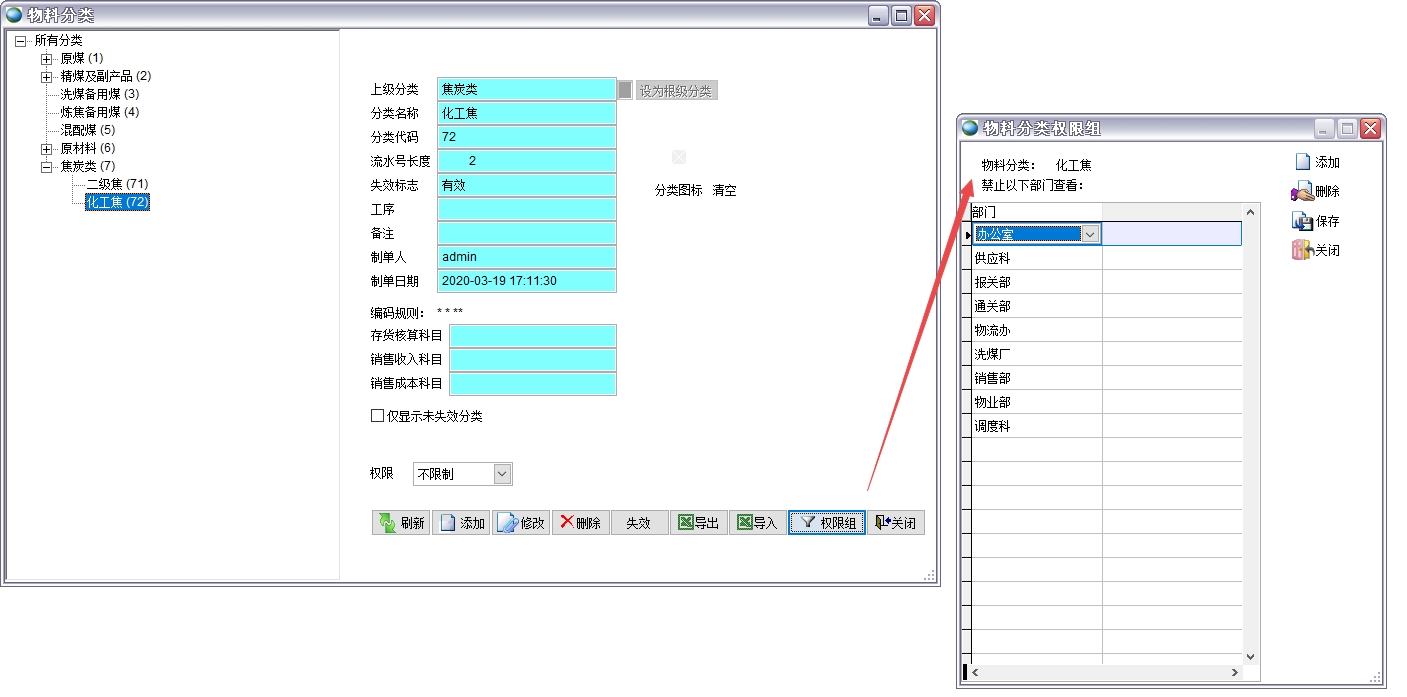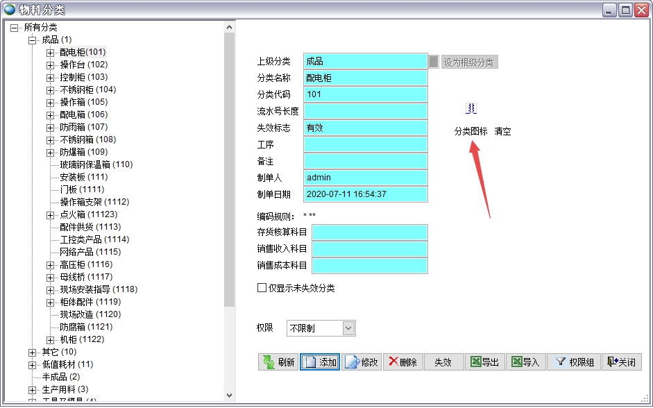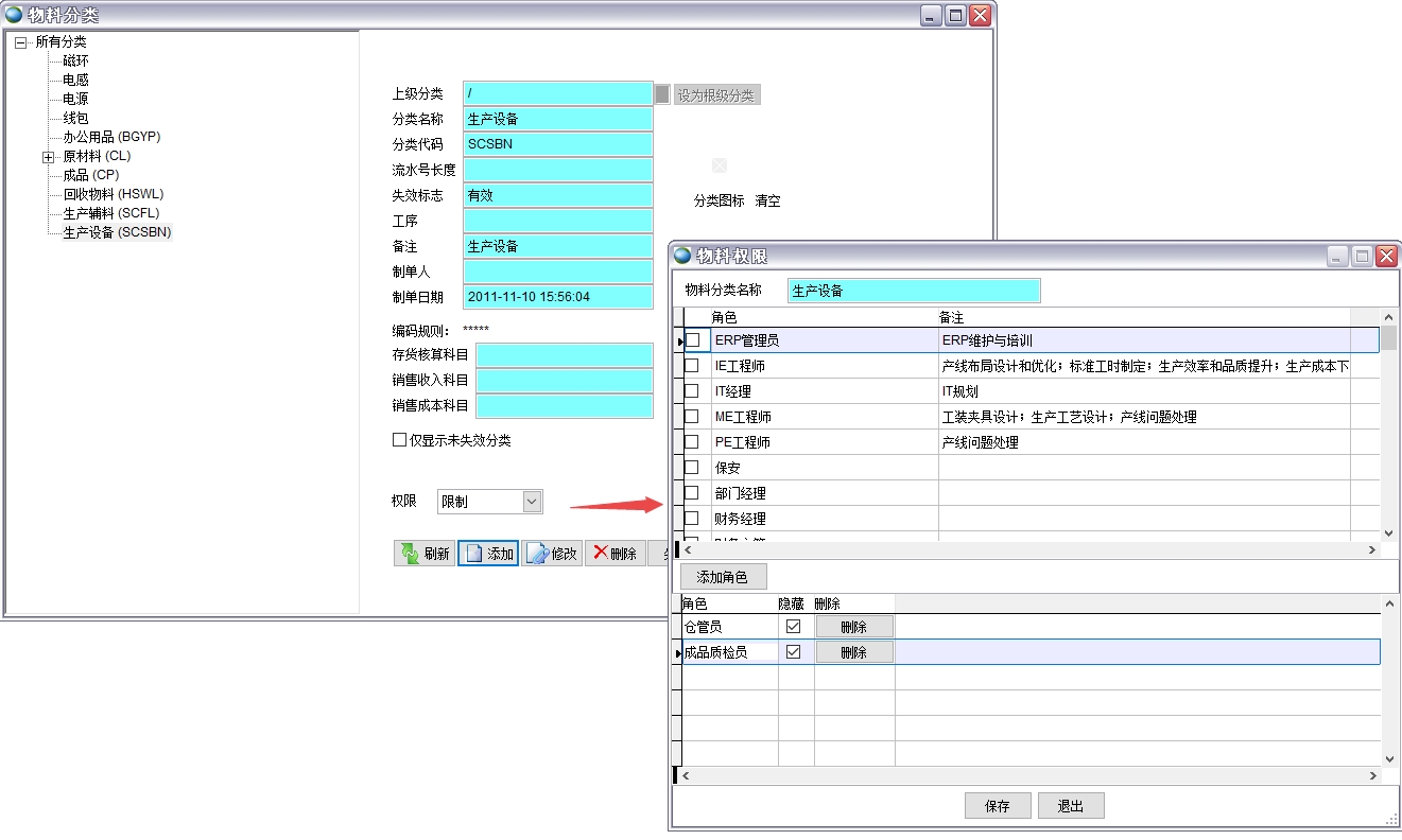 如果某類(lèi)物料不希望某些用戶看到,可以設(shè)置權(quán)限組