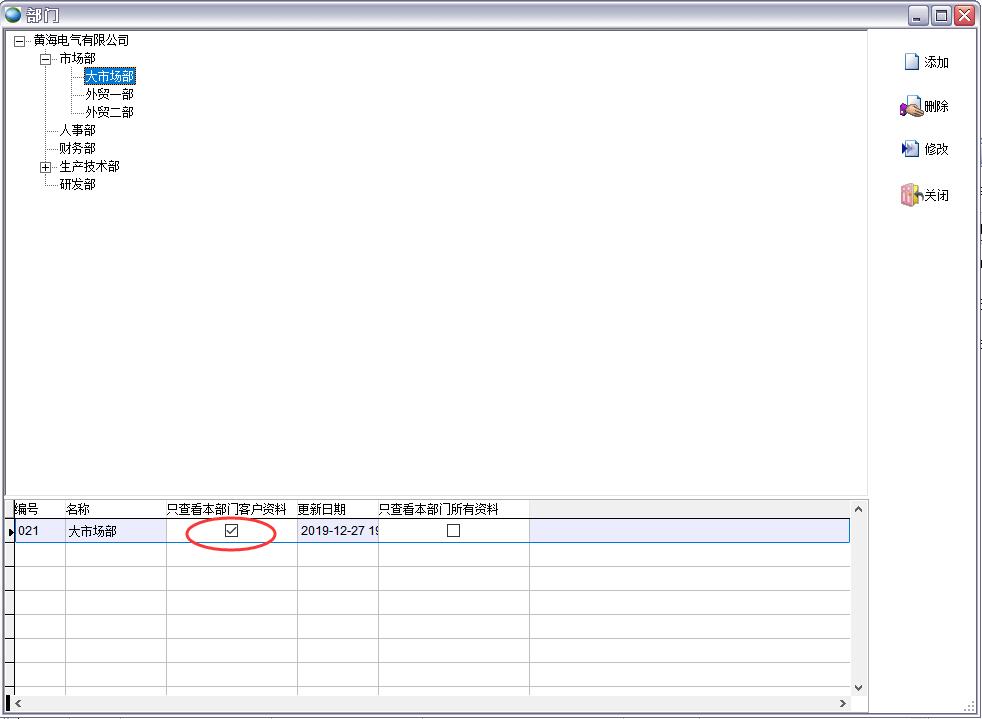 二、在角色中設置的權限只是分配了哪個賬號可以訪問客戶資料,有時候需要某個賬號只能查詢一部分客戶資料,這時在部門、業務員中做進一步設置。