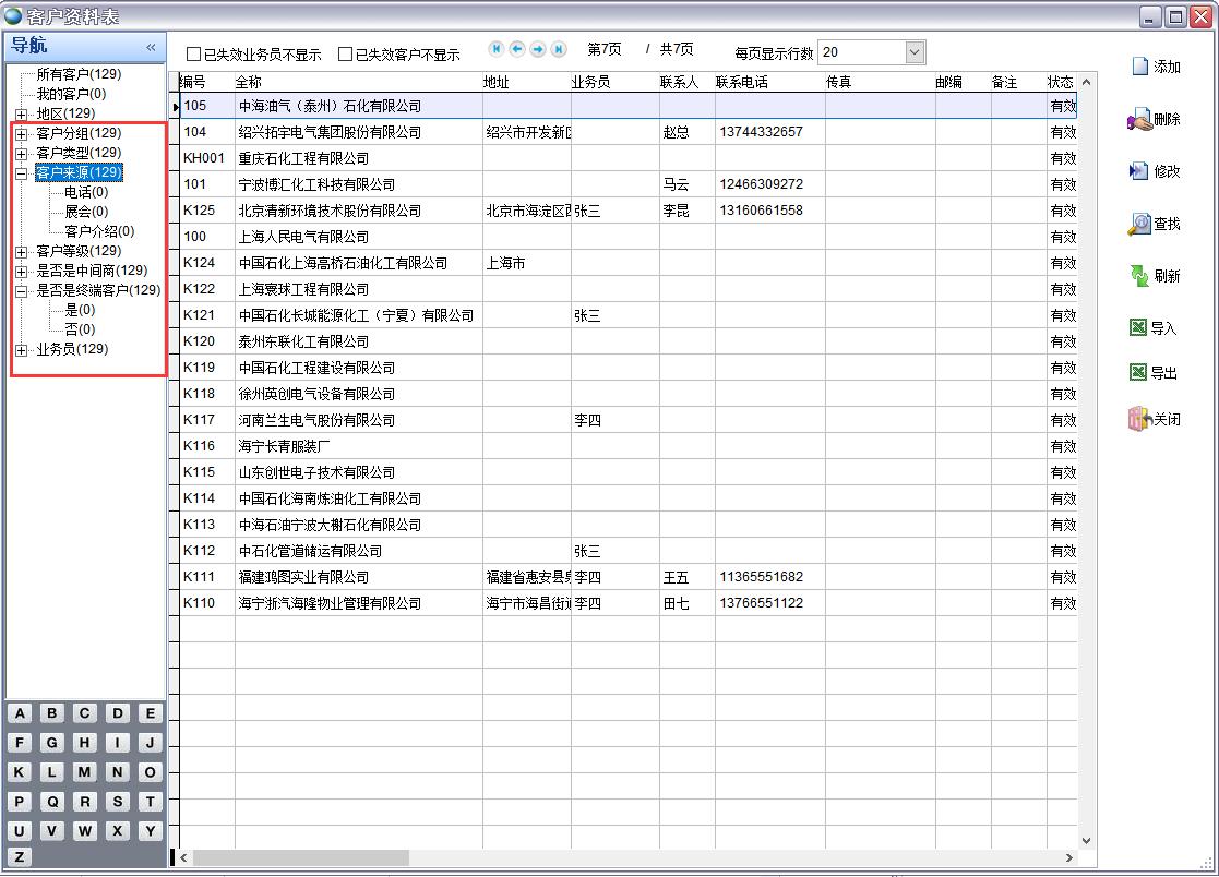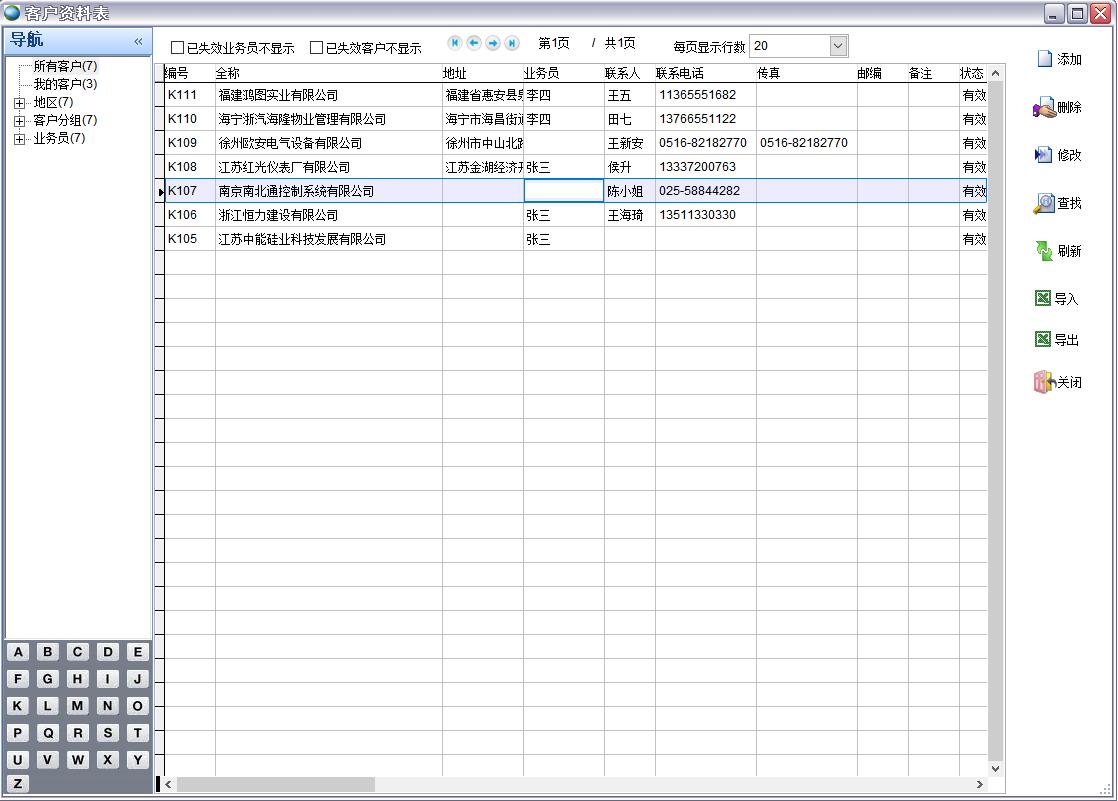 系統剛使用時可以將已有的客戶資料一次性導入,導入模板在安裝目錄下的數據導入模板目錄中
