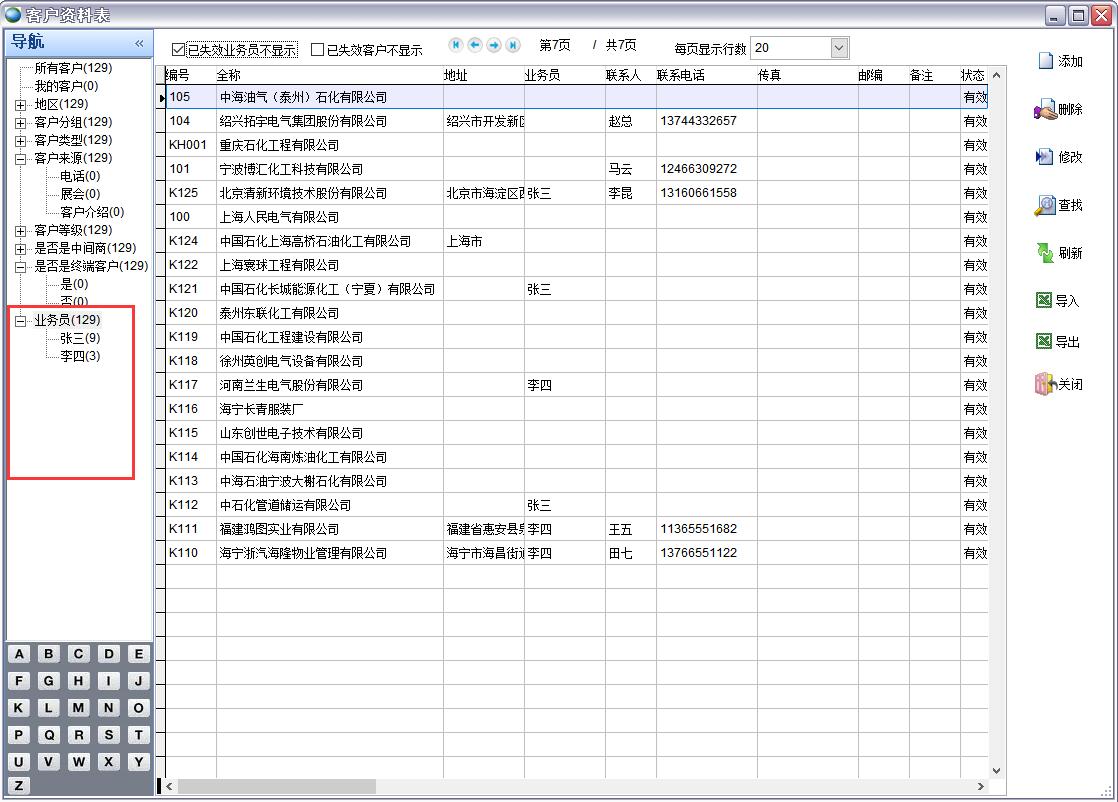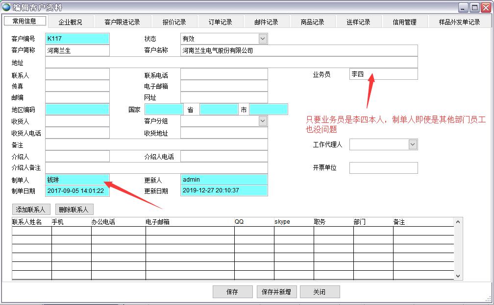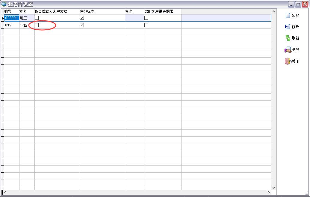 用李四賬號登錄ERP只能看到如下條件客戶資料