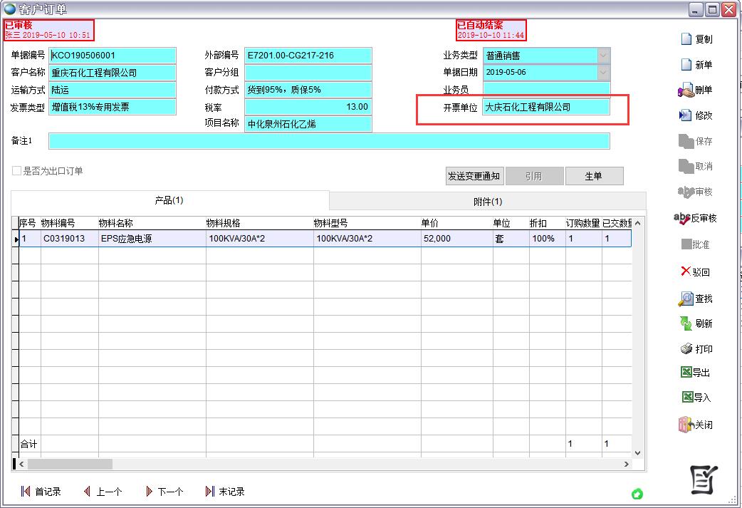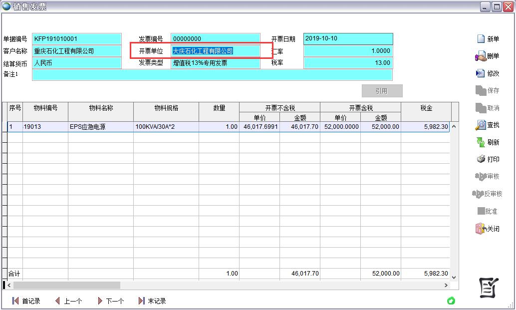 如果發票中的公司名稱不是客戶資料表中客戶名稱,可以輸入開票單位