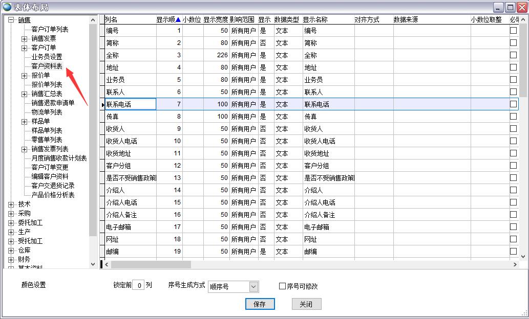 一、在角色中先設置客戶資料表的權限,詳見角色