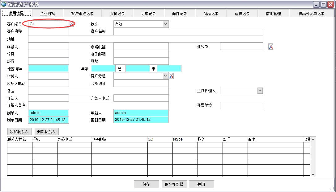 新建一個客戶資料時客戶編號、客戶簡稱、客戶名稱、地區編碼為必填項