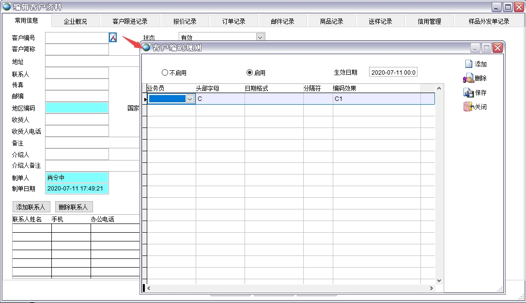 默認客戶編號不會自動生成,用管理員身份登錄設置編號規則