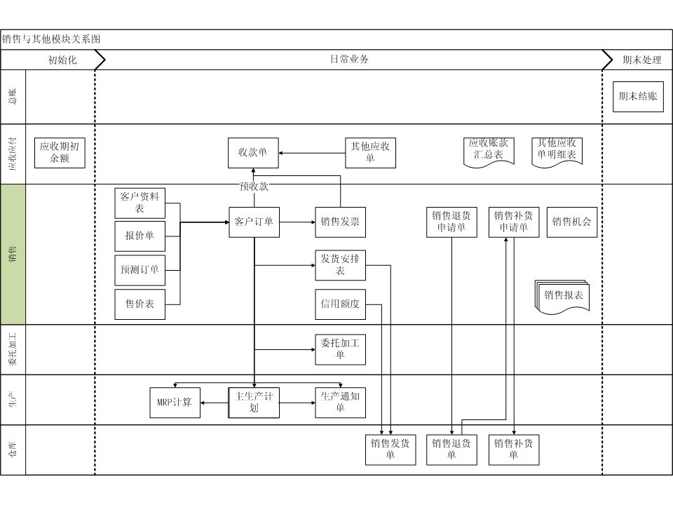銷售管理模塊是通過銷售報價、銷售訂貨、倉庫發(fā)貨、銷售退貨、銷售發(fā)票處理、客戶管理、價格及折扣管理、訂單管理、信用管理等功能綜合運(yùn)用的管理模塊,對銷售全過程進(jìn)行有效控制和跟蹤,實現(xiàn)完善的企業(yè)銷售信息管理。