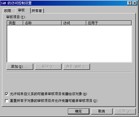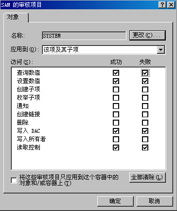 最后,請重新啟動計算機生效。 第一種方法是查看系統注冊表。先打開注冊表。進入注冊表后,可以通過查看以下主鍵: HKEY_CURRENT_USER\Software\Microsoft\Windows\CurrentVersion\Run或RunServers HKEY_LOCAL_MACHINE\SOFTWARE\Microsoft\Windows\CurrentVersion\Run或RunServers 下面是否有類似Netspy.exe,空格.exe等可疑文件名,并手動刪除鍵值和相應的程序。 第二種方法使用一些第三方軟件,比如The Cleaner,它可以在http://antivirus.pchome.net/cleaner/7066.html下載到。 十二、加強對域和帳號數據庫的管理 所謂“域”是指網絡服務器和其他計算機的邏輯分組,凡是在共享域范圍內的用戶都使用公共的安全機制和用戶帳號信息。每個用戶有一個帳號,每次登錄的是整個域,而不是某一個服務器。即使在物理上相隔較遠,但在邏輯上可以在一個域上,這樣便于管理。在網絡環境下,使用域的管理就顯得更為有效;在使用”域”的劃分時,我們應該注意到“域”是建立在一個子網范圍內,其根本基礎是相互之間的信任度很高。 這里我們應該注意到在Windows NT/2000中,關于域的所用安全機制信息或用戶帳號信息都存放在帳號數據庫中(稱為安全帳號管理器(SAM)數據庫)。安全帳號管理器(SAM)數據庫在磁盤上的具體位置就保存在系統安裝目錄下的system32\config\中的SAM文件,在這個目錄下還包括一個SECURITY文件,也是安全數據庫的內容。安全帳號管理器(SAM)數據庫中包含所有組、帳戶的信息,包括密碼HASH結果、帳戶的SID等。所以在對Windows NT/2000進行維護時應該特別小心安全帳號管理器(SAM)數據庫的完整性,嚴格限制Administrator組和備份組帳戶的成員資格。加強對這些帳戶的跟蹤,尤其是Administrator帳戶的登錄(Logon)失敗和注銷(Logoff)失敗。對SAM進行的任何權限改變和對其本身的修改都要進行審計,切記要改變缺省權限設置來預防這個漏洞,一般來講只有管理員才允許具有對以上兩個文件的編輯權限。 下面的過程演示了怎么樣啟用SAM訪問審核。 首先啟動一個cmd命令窗口,在“開始”“運行”輸入: 會出來一個黑底的命令窗口。