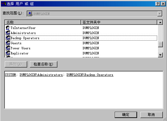 6. 單擊“添加“,然后“顯示用戶“; 7. 添加如下帳號: SYSTEM Domain Admins Administrator Backup Operators