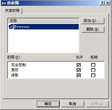 對于Windows NT/2000系統來說,默認情況下當新增一個共享目錄時,操作系統會自動將EveryOne這個用戶組添加到權限模塊當中,由于這個組的默認權限是完全控制,結果使得任何人都可以對共享目錄進行讀寫。因此,在新建共享目錄之后,要立刻刪除EveryOne組或者將該組的權限調整為讀取。相關編輯界面見下圖所示: