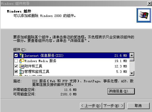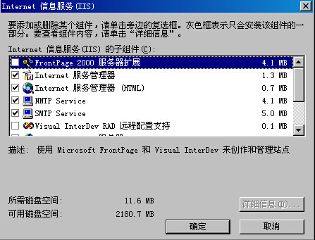 如果不使用SSI(server side include, 服務器端嵌入腳本),建議刪除“.shtm” “.stm” 和 “.shtml”這些映射.像:“.cer” “.cdx” “htr” “idc” “printer”等,如無特別需要,建議只保留“.asp”和“.asa”的映射。 Frontpage擴展服務 從控制面板里面打開“添加或刪除程序”選擇“添加/刪除windows組件” 選擇“Internet信息服務(IIS)”,點“詳細信息”,請確認FrontPage 2000服務器擴展沒有被勾上。如果有,則取消掉,點確定就可以了。