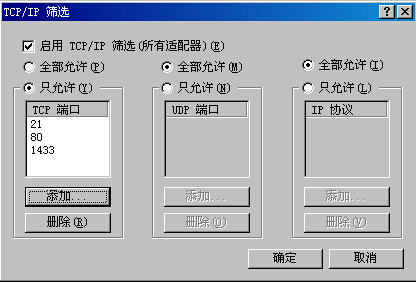 該命令就是把用戶名為“netconf”的密碼由原來的“netconf”改成“netconf1”。 2、使用安全的帳號策略。 由于SQL Server不能更改sa用戶名稱,也不能刪除這個超級用戶,所以,我們必須對這個帳號進行最強的保護,首先要選擇一個非常強壯的密碼。 其次,最好不要在數(shù)據(jù)庫應(yīng)用中使用sa帳號,只有當(dāng)沒有其它方法登錄到 SQL Server時才使用 sa。建議數(shù)據(jù)庫管理員新建立一個擁有與sa一樣權(quán)限的超級用戶來管理數(shù)據(jù)庫。安全的帳號策略還包括不要讓管理員權(quán)限的帳號泛濫。 SQL Server的認證模式有Windows身份認證和混合身份認證兩種。如果數(shù)據(jù)庫管理員不希望操作系統(tǒng)管理員來通過操作系統(tǒng)登陸來接觸數(shù)據(jù)庫的話,可以在帳號管理中把系統(tǒng)帳號“BUILTIN\Administrators”刪除。不過這樣做的結(jié)果是一旦sa帳號忘記密碼的話,就沒有辦法來恢復(fù)了。 很多主機使用數(shù)據(jù)庫應(yīng)用只是用來做查詢、修改等簡單功能的,請根據(jù)實際需要分配帳號,并賦予僅僅能夠滿足應(yīng)用要求和需要的權(quán)限。比如,只要查詢功能的,那么就使用一個簡單的public帳號能夠select就可以了。 3、管理擴展存儲過程。 對存儲過程進行大手術(shù),并且對帳號調(diào)用擴展存儲過程的權(quán)限要慎重。其實在多數(shù)應(yīng)用中根本用不到多少系統(tǒng)的存儲過程,而SQL Server的這么多系統(tǒng)存儲過程只是用來適應(yīng)廣大用戶需求的,所以請刪除不必要的存儲過程,因為有些系統(tǒng)的存儲過程能很容易地被人利用起來提升權(quán)限或進行破壞。 如果你不需要擴展存儲過程xp_cmdshell請把它去掉。使用這個SQL語句: use master EXEC sp_dropextendedproc 'xp_cmdshell' xp_cmdshell是進入操作系統(tǒng)的最佳捷徑,是數(shù)據(jù)庫留給操作系統(tǒng)的一個大后門。如果你需要這個存儲過程,請用這個語句也可以恢復(fù)過來。 EXEC sp_addextendedproc 'xp_cmdshell', 'xpsql70.dll' 如果你不需要請丟棄OLE(對象鏈接與嵌套,Object Linking and Embedding)自動存儲過程(會造成管理器中的某些特征不能使用),這些過程包括如下: EXEC Sp_OACreate Sp_OADestroy Sp_OAGetErrorInfo Sp_OAGetProperty &, nbsp; Sp_OAMe, , , , thod Sp_OASetProperty Sp_OAStop 去掉不需要的注冊表訪問的存儲過程,注冊表存儲過程甚至能夠讀出操作系統(tǒng)管理員的密碼來,如下: Xp_regaddmultistring Xp_regdeletekey Xp_regdeletevalue Xp_regenumvalues Xp_regread Xp_regremovemultistring Xp_regwrite 還有一些其他的擴展存儲過程,你也最好檢查檢查。 在處理存儲過程的時候,請確認一下,避免造成對數(shù)據(jù)庫或應(yīng)用程序的傷害。 7、對網(wǎng)絡(luò)連接進行IP限制 SQL Server 2000數(shù)據(jù)庫系統(tǒng)本身沒有提供網(wǎng)絡(luò)連接的安全解決辦法,但是Windows 2000提供了這樣的安全機制。使用操作系統(tǒng)自己的IPSec可以實現(xiàn)IP數(shù)據(jù)包的安全性。請對IP連接進行限制,只保證自己的IP能夠訪問,也拒絕其他IP進行的端口連接,把來自網(wǎng)絡(luò)上的安全威脅進行有效的控制。 在windows 2000中提供了一種叫IPsec的安全工具,它能通過自定義規(guī)則來允許或者拒絕其他用戶通過TCP/IP協(xié)議來訪問服務(wù)器某個端口。 在網(wǎng)絡(luò)屬性里面,選擇網(wǎng)卡的“本地連接”“tcp/ip屬性”選擇“高級” 選擇屬性,勾選“啟用TCP/IP篩選(所有示配器)”