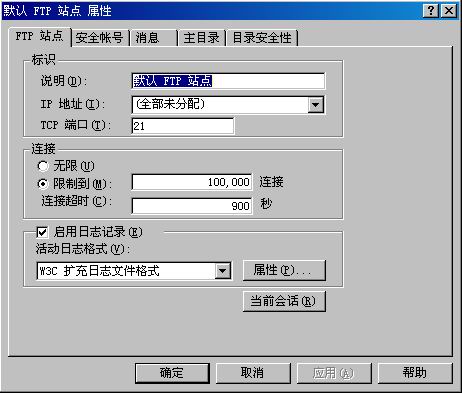 這樣,其他用戶通過這塊網(wǎng)卡就只能訪問到服務(wù)器的21,80,1433端口了。 Windows NT/2000的日志文件通常有應(yīng)用程序日志,安全日志、系統(tǒng)日志、DNS服務(wù)器日志、FTP日志、WWW日志等等。當(dāng)非法用戶探測系統(tǒng)信息的時候,就會在安全日志里迅速地記下機器被探測時所用的用戶名、時間等等,用FTP探測后,也會立刻在FTP日志中記下IP、時間、探測所用的用戶名和密碼等等,由此可見日志審計的重要性。以下即是對各種服務(wù)日志文件的默認位置和文件內(nèi)容描述: 關(guān)于日志文件默認位置: 應(yīng)用程序日志、安全日志、系統(tǒng)日志、DNS等服務(wù)日志的默認位置在系統(tǒng)安裝目錄下的system32\config下。 關(guān)于日志文件保存目錄詳細描述: 安全日志文件:系統(tǒng)安裝目錄\system32\config\SecEvent.EVT 系統(tǒng)日志文件:系統(tǒng)安裝目錄\system32\config\SysEvent.EVT 應(yīng)用程序日志文件:系統(tǒng)安裝目錄\system32\config\AppEvent.EVT FTP日志默認位置:系統(tǒng)安裝目錄\system32\logfiles\msftpsvc1\日志文件 WWW日志默認位置:系統(tǒng)安裝目錄\system32\logfiles\w3svc1\日志文件 定時(Scheduler)服務(wù)日志默認位置:系統(tǒng)安裝目錄\schedlgu.txt 安全日志文件,系統(tǒng)日志文件,應(yīng)用程序日志文件,這三個日志記錄都是有系統(tǒng)的一個稱為: Event Log服務(wù)生成的,Event Log 的作用是記錄程序和 Windows 發(fā)送的事件消息。事件日志包含對診斷問題有所幫助的信息。停止和啟動該服務(wù)就可以停止或者開始記錄上述三個日志文件。 FTP日志和WWW日志均是在Internet信息服務(wù)里面配置和控制。 在控制面板,管理工具里面打開Internet信息服務(wù),如下圖: 其中“dumplogin”是機器名,分別右鍵“默認FTP站點”“默認Web站點”,選擇“屬性”,以FTP的為例: