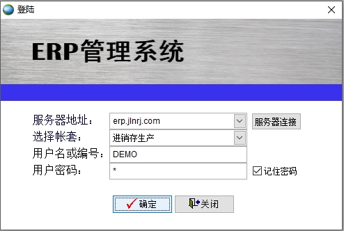 ERP登錄界面,用戶名:DEMO,密碼:1