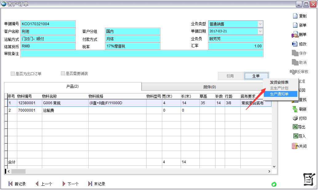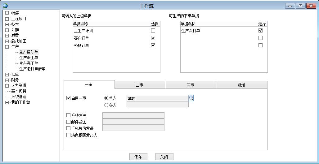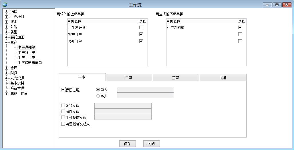 如果我們啟用一審,則生產通知單必須審核才能被下級單據轉入