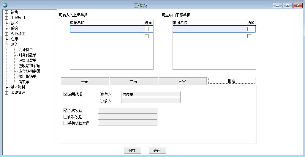 因此一個業務單據可以通過設置一審、二審、三審、批準來完成一項業務的審批。