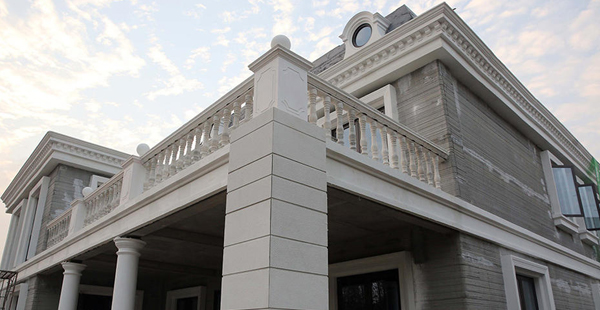 五幢使用3D打印技術建造的建筑亮相江蘇省蘇州工業園區,這些建筑的墻體由大型3D打印機層層疊加噴繪而成,打印使用的“油墨”是由建筑垃圾、水泥、砂漿和特制凝固劑等制成的。據介紹,3D打印機的噴嘴可按照電腦中的設計圖,源源不斷地噴出灰色“油墨”后迅速凝固,打印時還可預留出水管、電線等管路通道,避免裝修時打墻開洞。這種3D打印的墻體牢固強度是傳統建筑承重墻的5倍,建筑工期可縮短70%,建筑成本可至少節省50%以上。