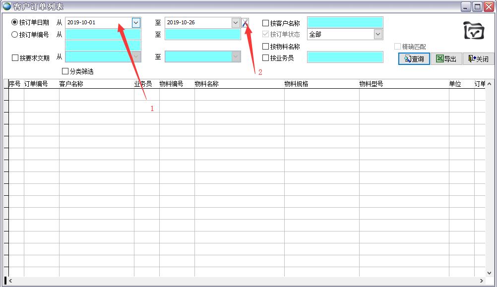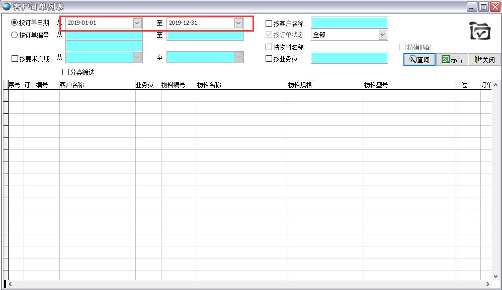 4、重新打開(kāi)客戶訂單列表,默認(rèn)日期為當(dāng)年