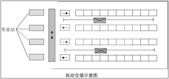 自動倉儲系統(tǒng)是由電腦控制設(shè)備來記憶物料存放的位置,利用無人搬運車系統(tǒng)、自動存取臂與條形碼掃描設(shè)備,通過電腦控制即可自動存取物料。在這種系統(tǒng)下,倉庫庫位密集并且采用高貨架,可以利用較小的面積提供大的倉庫容量,極大地節(jié)省了空間和人力,有效提高了作業(yè)效率。下圖是一種自動倉儲系統(tǒng)的示意圖。