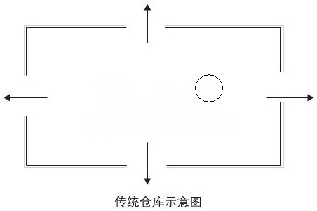 自動倉儲系統(tǒng)的規(guī)劃與傳統(tǒng)倉庫之間有很大的區(qū)別。自動倉庫一般設(shè)置一個集中的出入口,同時在自動倉庫里面設(shè)置多個作業(yè)展臺;而傳統(tǒng)的倉庫為了實現(xiàn)搬運距離最短,通常設(shè)置多個倉庫進出口。二者的不同可以從下面兩幅圖中直觀地看出。
