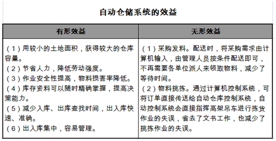 自動倉儲系統(tǒng)的興起,有其獨特的優(yōu)勢。它可以創(chuàng)造傳統(tǒng)倉庫無法創(chuàng)造的效益,如下表所示。