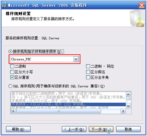 12.設置排序規則,默認為Chinese_PRC,不更改設置,下一步即可