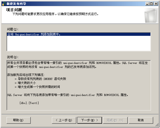 1. 所有被同步的數據表盡量要用主鍵,如果沒有主鍵也沒有關系,SqlServer會提示為表自動生成主鍵,如圖