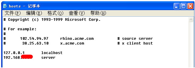 配置方式: 用記事本打開hosts文件,在文件的最下方添加IP地址和主機名的對應關系。如圖:
