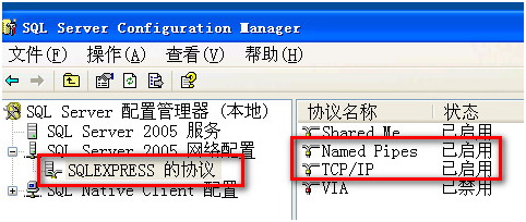 5、開啟SQL Server 2005的網絡協議TCP/IP和管道命名協議并重啟網絡服務。