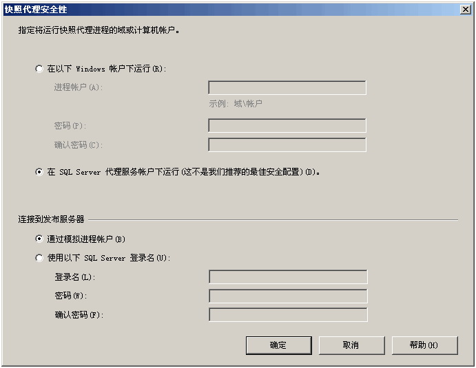 (6)設置快照代理安全性,連接到發布服務器時,用模擬進程即可。
