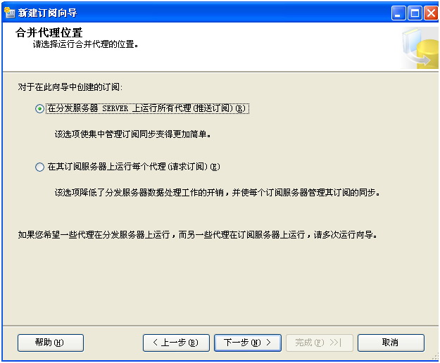 (3)選擇運行代理的位置,根據需求選擇是“推送”還是“請求”!