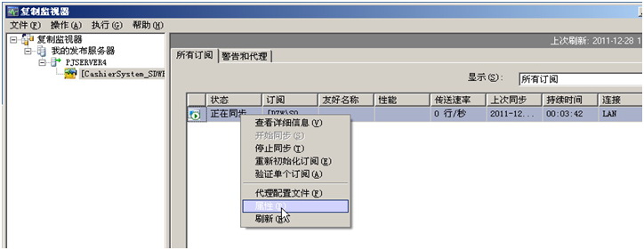 查看同步狀態,只能在發布服務器上查看。具體操作步驟:(下列圖中的發布跟上面提到的不是同一個發布)