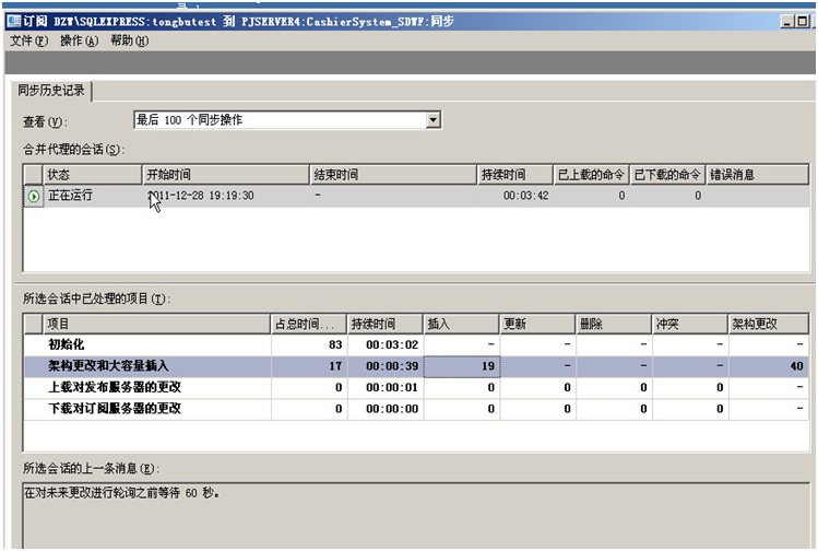 (3)打開屬性后,會彈出同步歷史記錄的對話框。這里有插入、更新、刪除等操作的記錄。