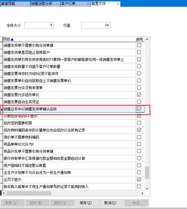 2、有些企業規定將發貨金額作為應收金額,即發了多少貨就收多少錢,與有沒有開票無關,在配置文件中需要勾選銷售業務中以銷售發貨單確認應收
