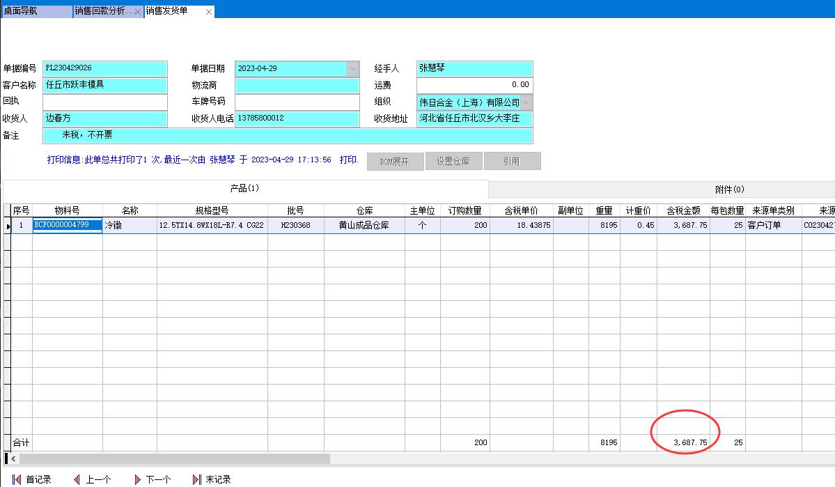 以上兩種特殊情況下應收款金額就是銷售發貨單的金額