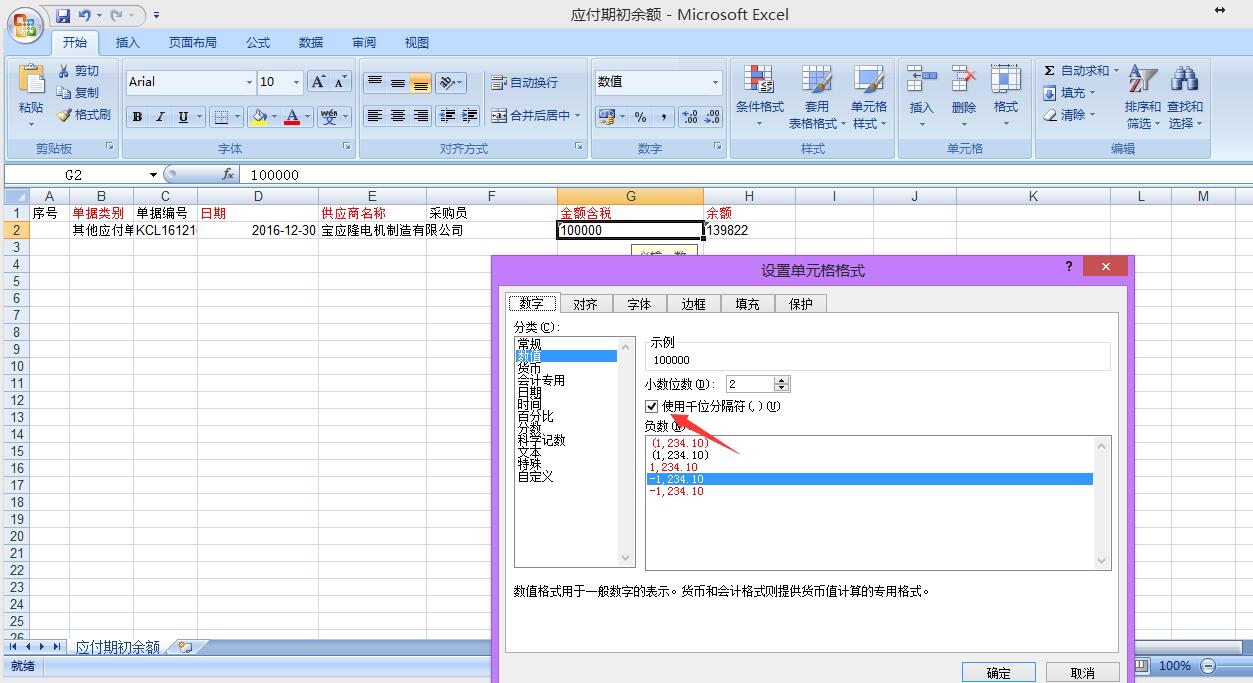 這里的日期可以是單據實際發生的日期,以江陰金橋的付款單為例,付款日期為2012年6月27日,付款金額為38900元,到2013年年初還有155.6元應付金額。