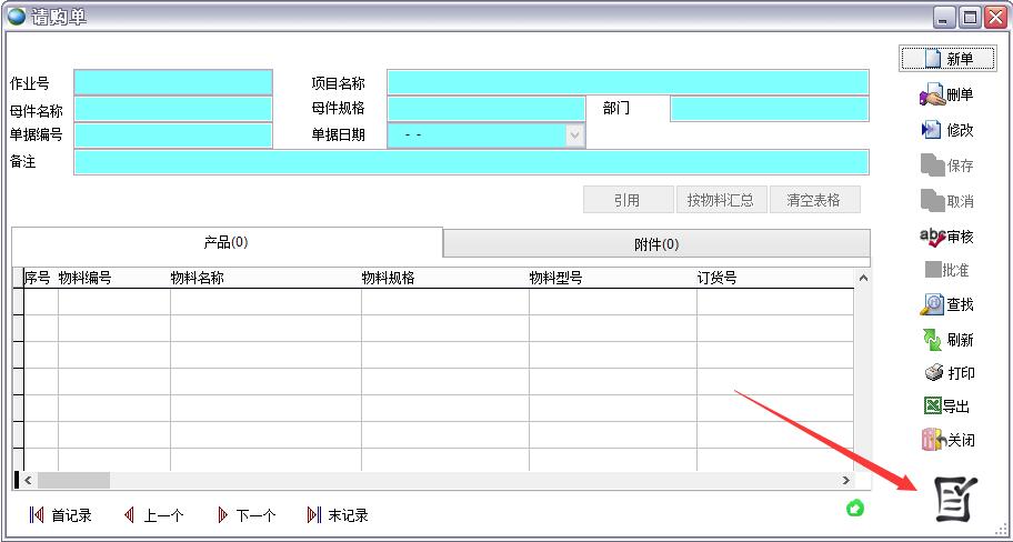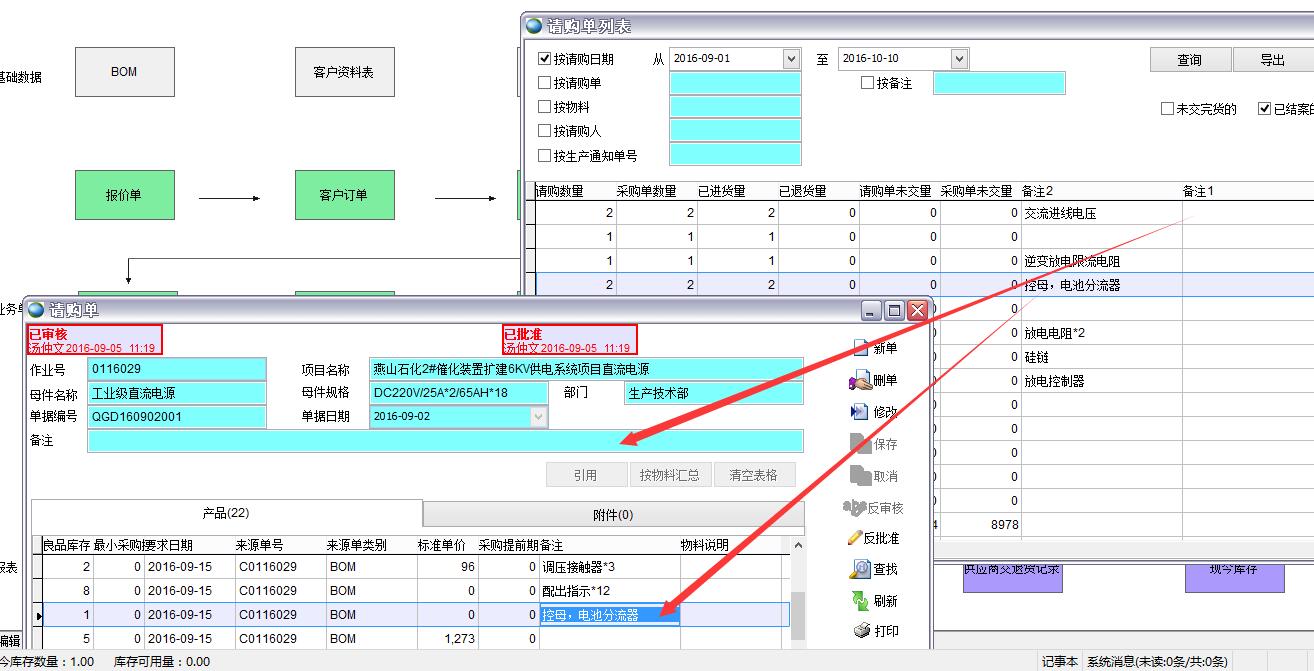 請購單列表有兩個備注列,分別對應請購單的表頭備注和表格中的明細備注