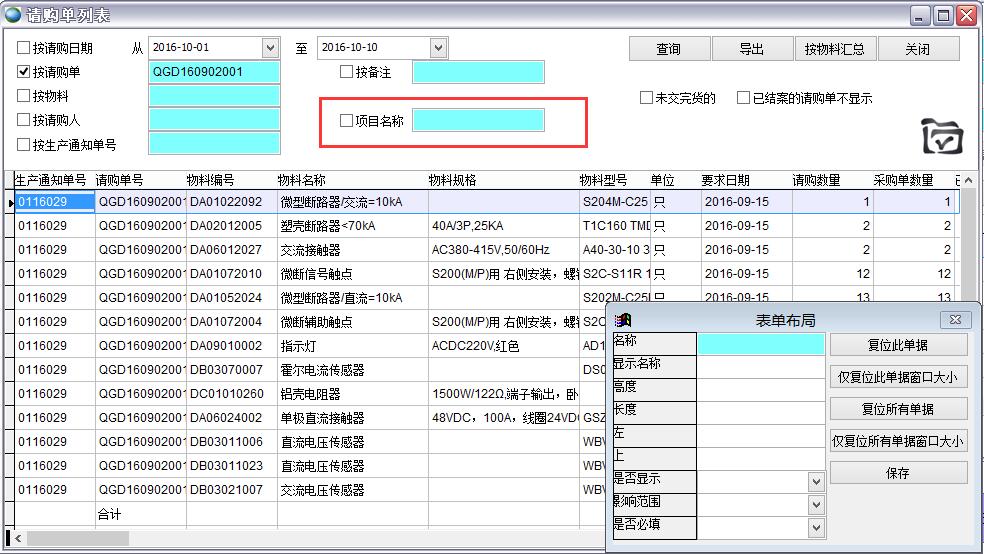 如果在請購單中使用了項目名稱,可以通過表單布局,在請購單列表中將項目名稱選擇出來(默認是隱藏的)