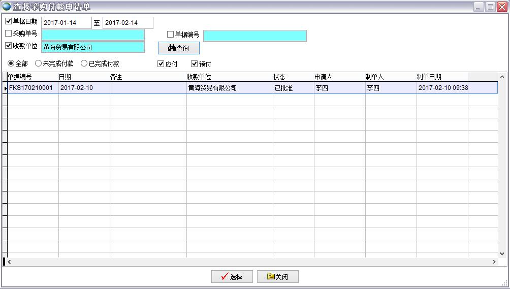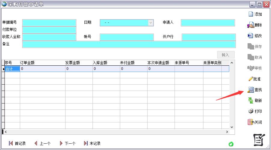 查找采購付款申請單