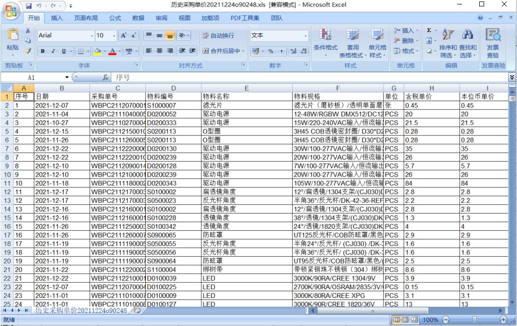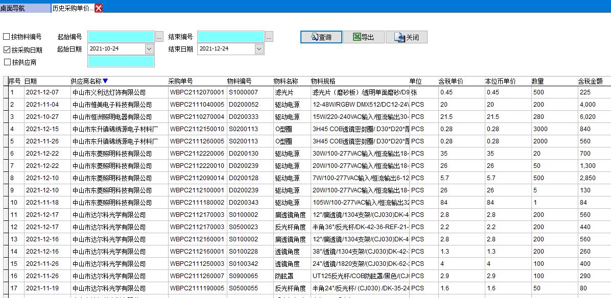 打開路徑:【首頁】-【工作臺】-【采購】-【報(bào)表】-【歷史采購單價(jià)】
