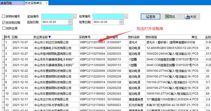 通過歷史采購單價(jià)可以查詢以往采購的價(jià)格