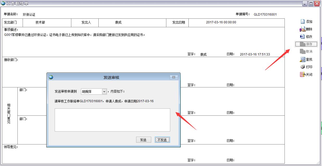 如果勾選了系統發送,則會有發送人的消息發送和接收人的消息提醒。