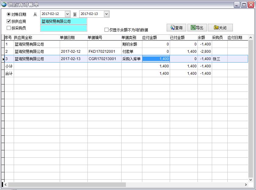 不勾選僅顯示余額不為0的數(shù)據(jù)時(shí),會(huì)將所有供應(yīng)商顯示出來。但是勾選此選項(xiàng)后不顯示的供應(yīng)商不表示這時(shí)間段沒有業(yè)務(wù)發(fā)生