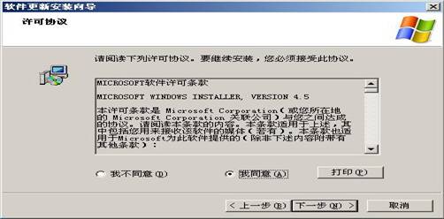 8.系統自動解壓Windows Installer 4.5的安裝文件,解壓完成后,出現軟件更新安裝向導,如下圖所示: