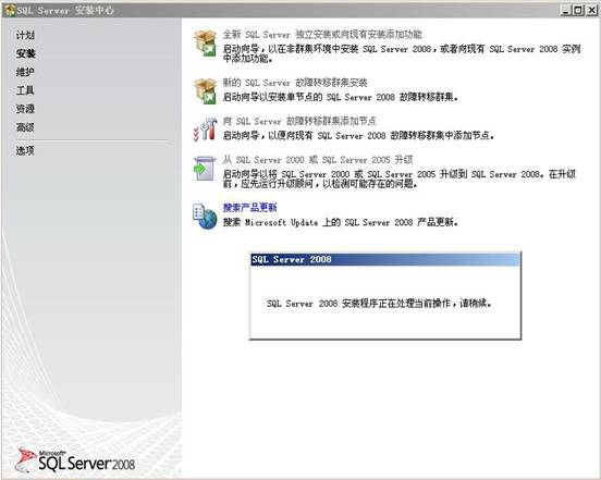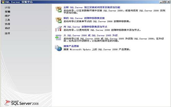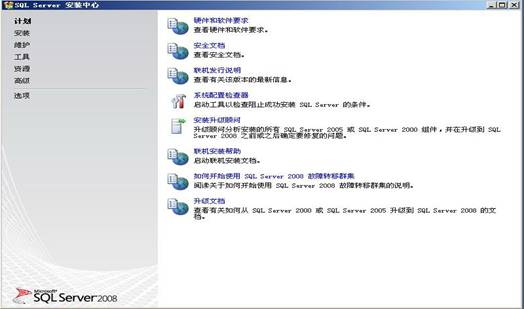 14.重啟完成后,運行光驅中SQL Server 2008安裝程序,出現SQL Server安裝中心的界面,如下圖所示: