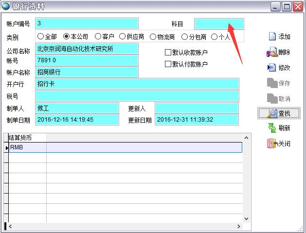 銀行資料是記錄所有單位包括本公司銀行賬號等信息的地方。