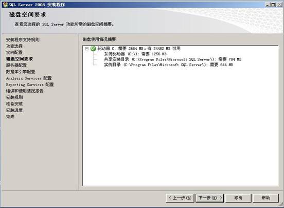 26.出現(xiàn)磁盤所需空間的要求的界面,點擊【下一步】,如下圖所示: