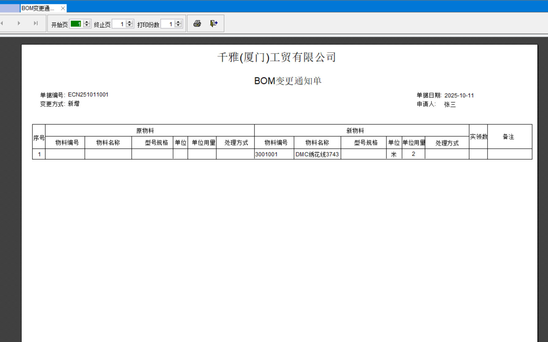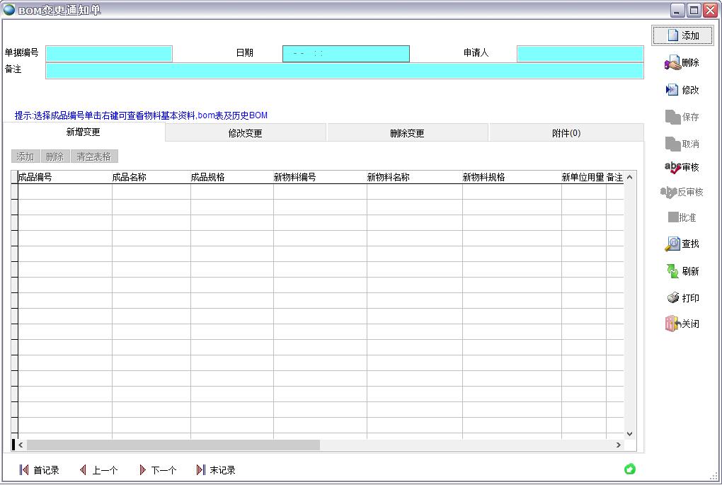 打開路徑:【主菜單】->【技術】->【BOM】->【BOM變更通知單】