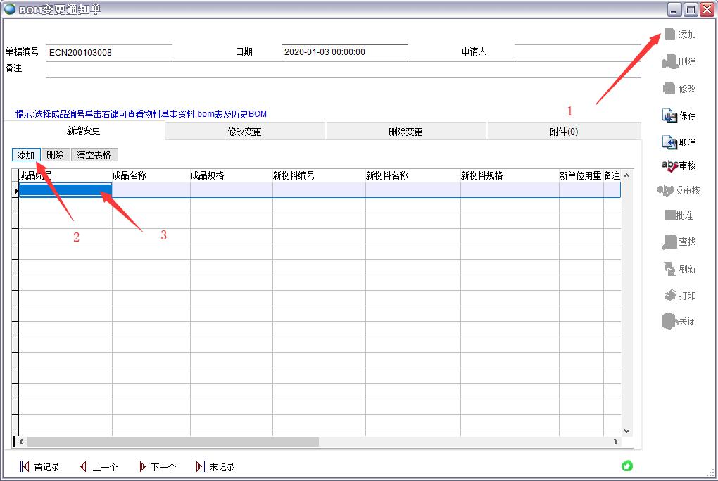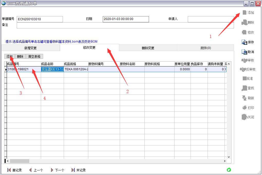 BOM變更分三種形式:新增變更(添加物料)、修改變更(修改已有物料)、刪除變更(刪除某個物料)